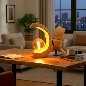 Aus einem gewachsenen Material wird ein funktionales Lichtobjekt mit Atmosphäre. Das Ergebnis ist eine Leuchte, die Wärme, Ruhe und Natürlichkeit in den Raum bringt.