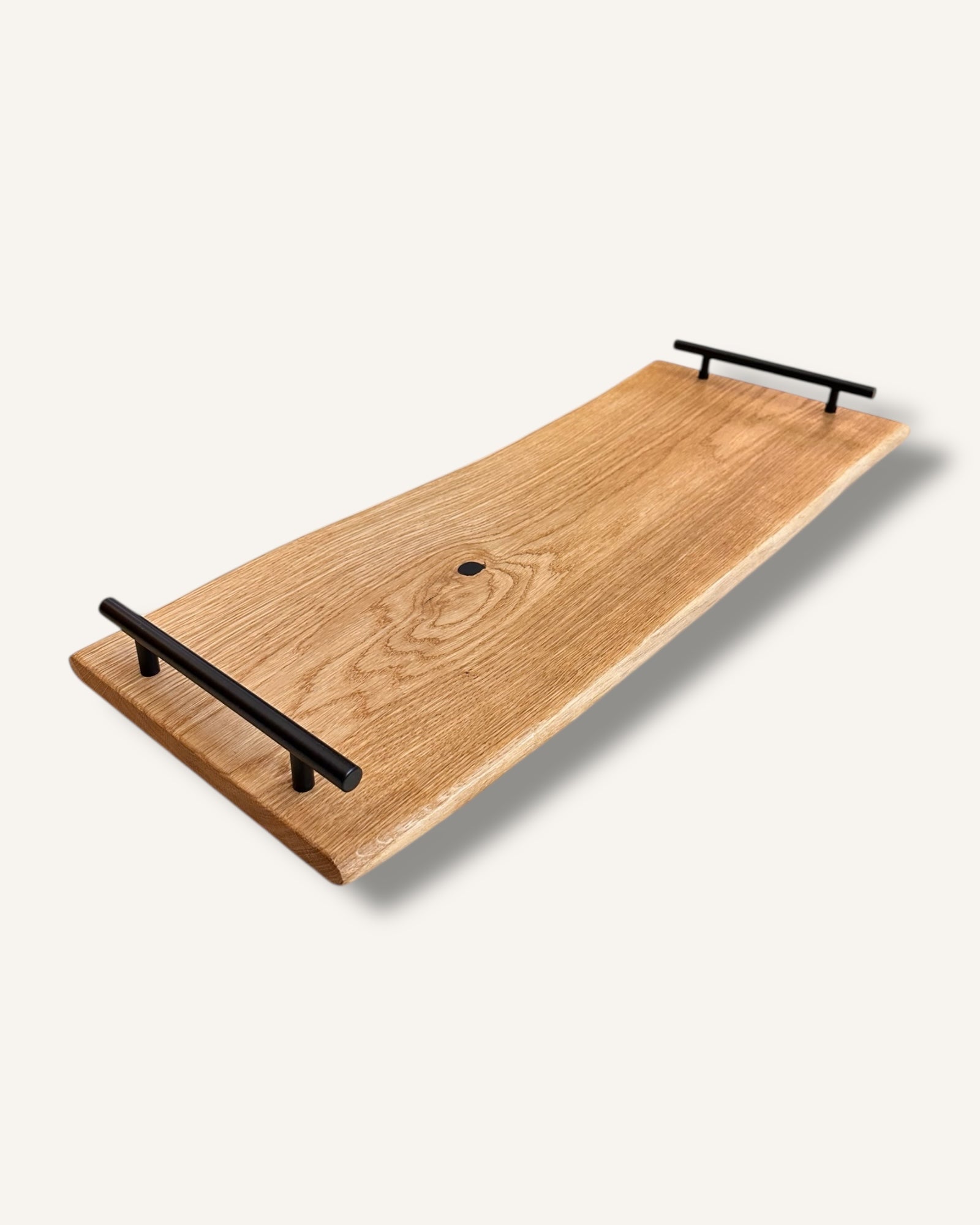 Entdecken Sie unser aussergewöhnliches Service-Brett – ein wahres Unikat aus edlem Eichenholz, liebevoll geölt, um seine natürliche Schönheit zu betonen.