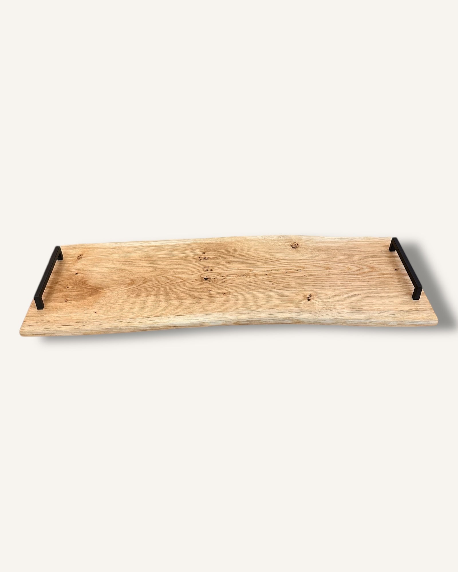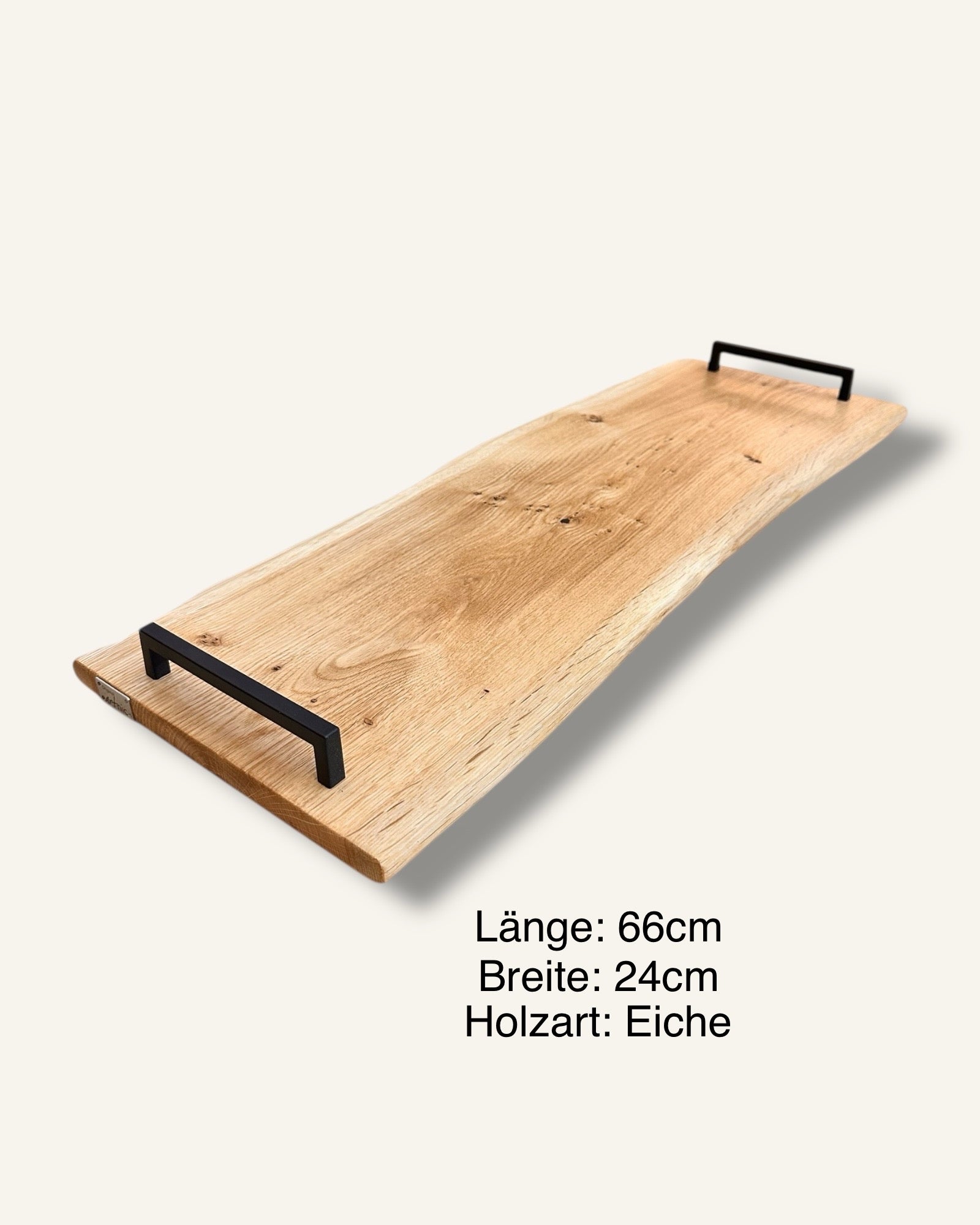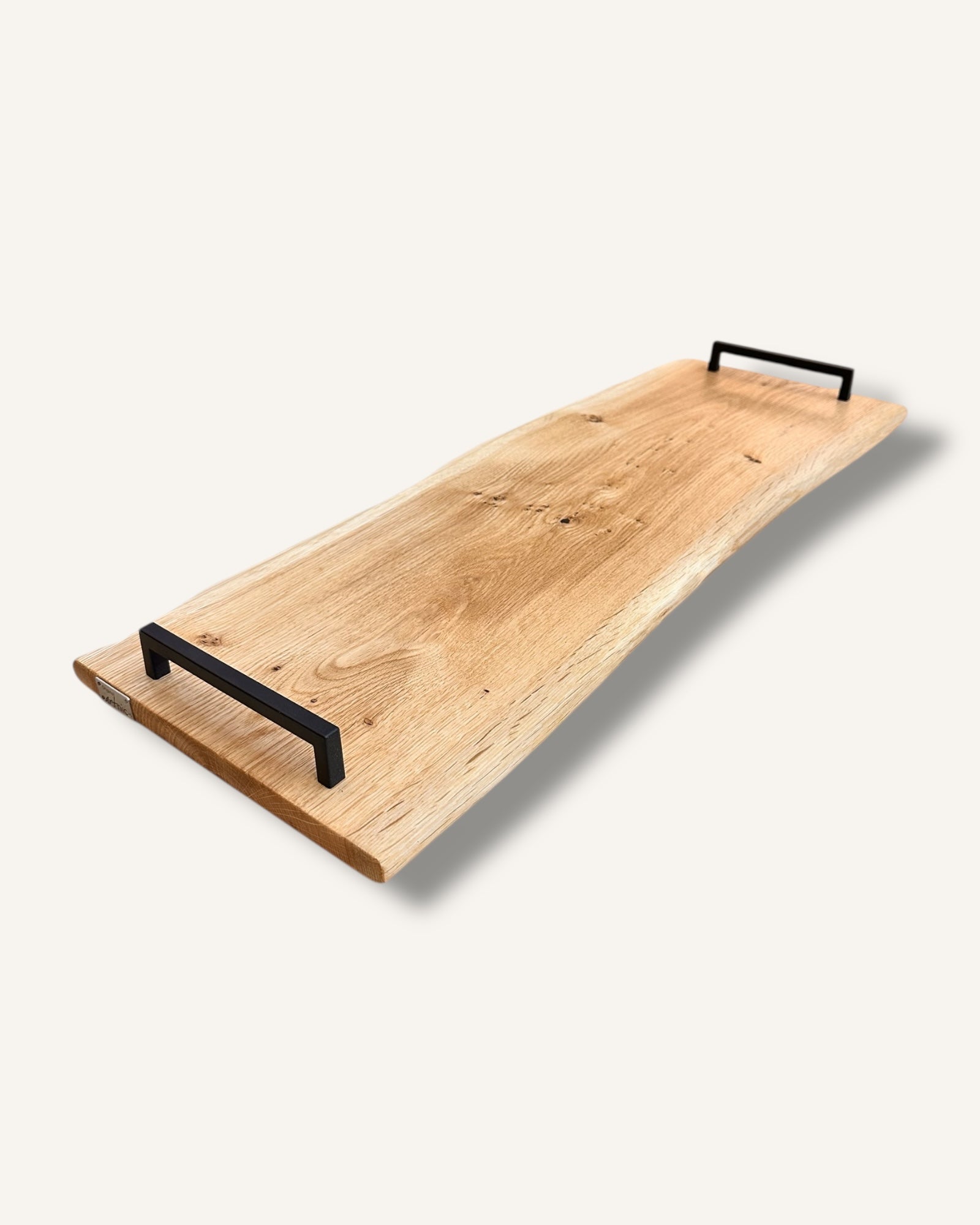 Entdecken Sie unser aussergewöhnliches Service-Brett – ein wahres Unikat aus edlem Eichenholz, liebevoll geölt, um seine natürliche Schönheit zu betonen.