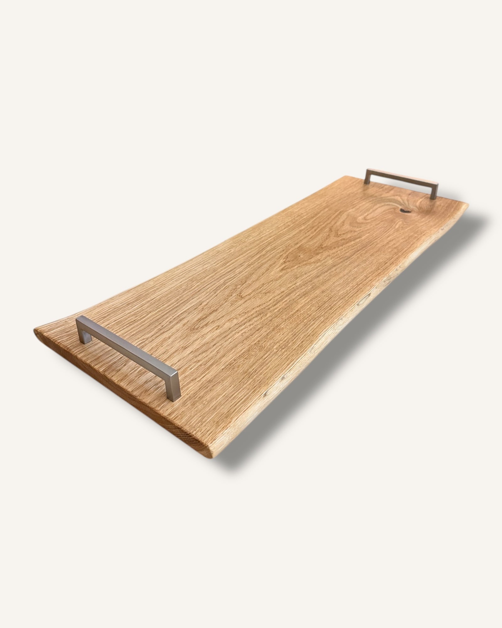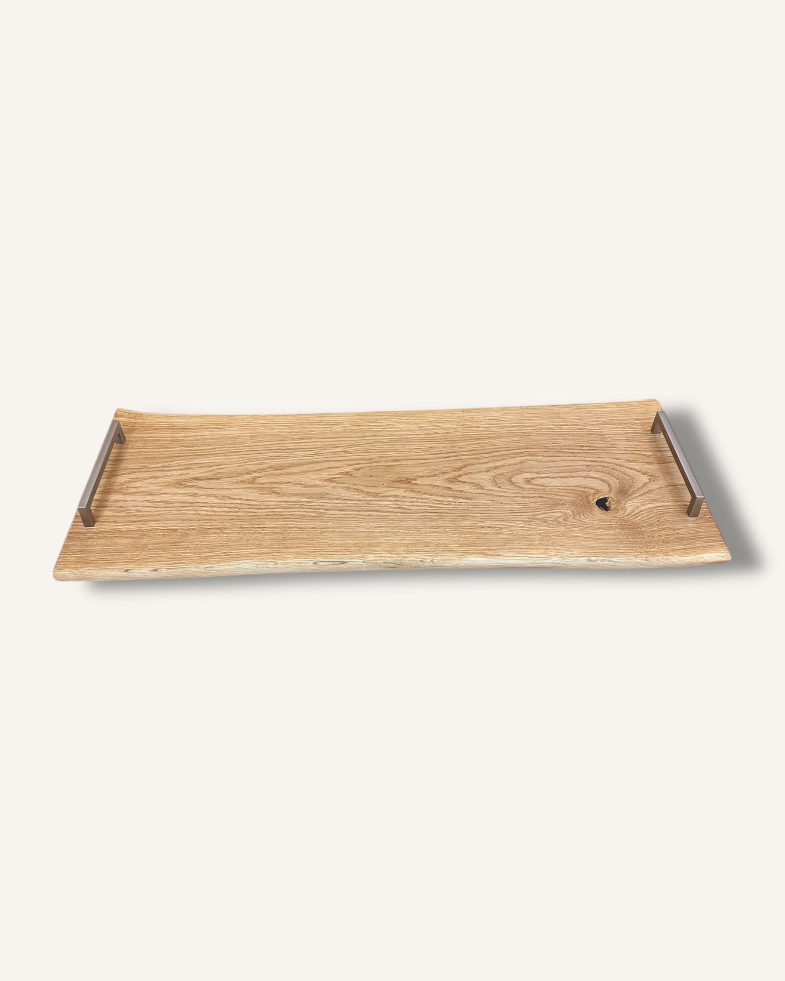 Entdecken Sie unser aussergewöhnliches Service-Brett – ein wahres Unikat aus edlem Eichenholz, liebevoll geölt, um seine natürliche Schönheit zu betonen.