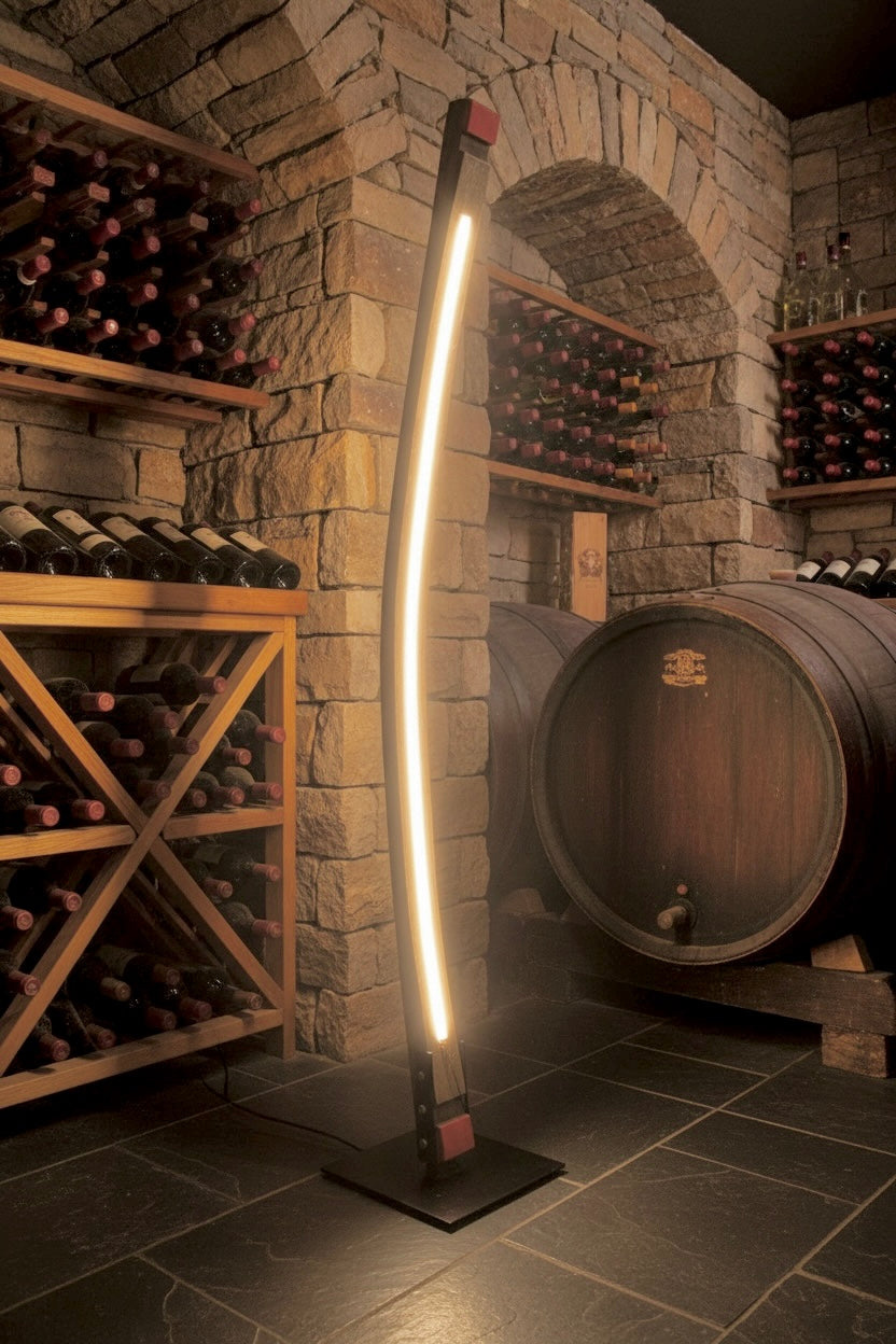 Entdecke die einzigartige Stehleuchte aus einer einzelnen Fassdaube in Eiche – ein Meisterwerk, das mit Liebe zum Detail von einem 2500 Liter Weinfass handgefertigt wurde. Diese exklusive Leuchte vereint rustikales Flair mit moderner Technologie und wird garantiert zum Highlight in jedem Raum.